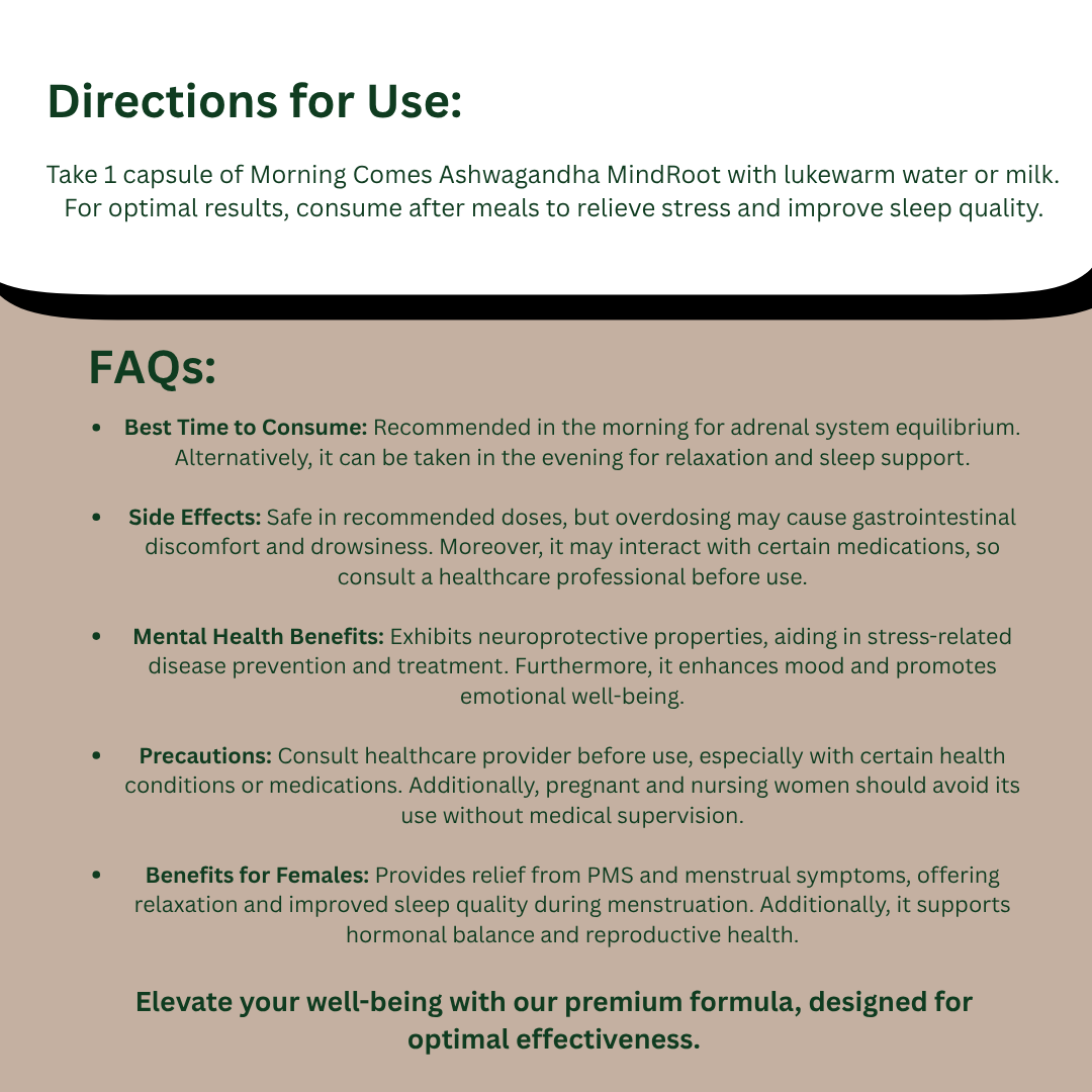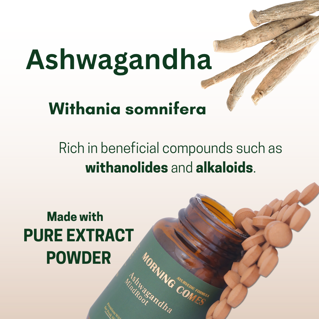 Discover the power of Morning Comes Ashwagandha Stress Relief, an evergreen shrub celebrated for its medicinal properties. Derived from its roots and fruits, it serves as a potent apoptogenic herb, offering numerous health benefits to rejuvenate  mind and body.